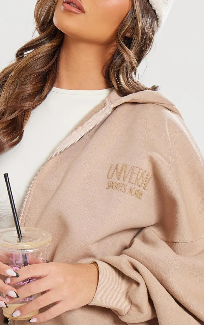 Get ready to earn some serious style point sin this light mocha premium washed tonal print zip up boxy hoodie. Brought to you in a light mocha washed material with a tonal print design and a zip up fastening, how can you go wrong. Team this boxy hoodie with the matching sweatpants, a white tee and sneakers for a neutral off-duty look that won’t go unnoticed.