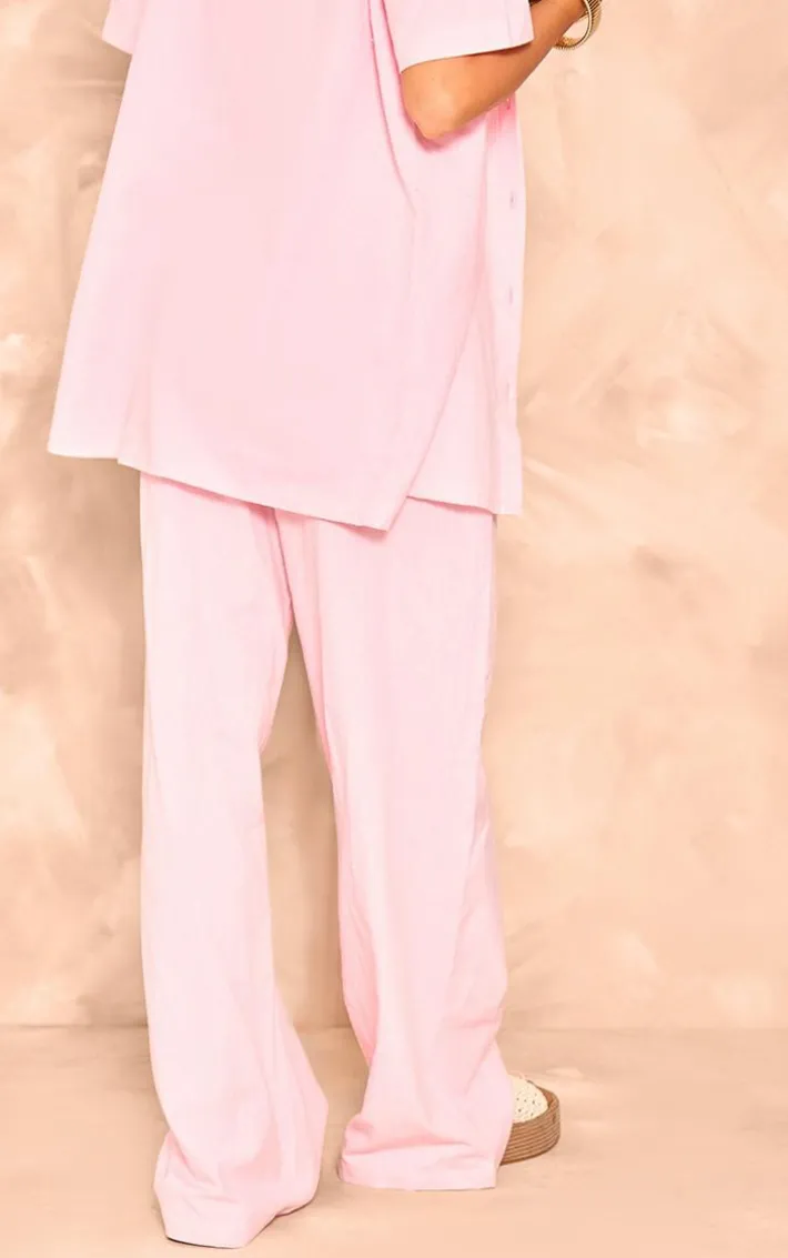 Add some dreamy hues to your new season wardrobe with these light pink linen look high waisted tailored pants, they’re perfect for dressing up or down. These pants feature a light pink linen look material with a high waisted design and a tailored fit. Team these linen look pants with the matching shirt, sandals and a shoulder bag for the perfect Summer ready look.