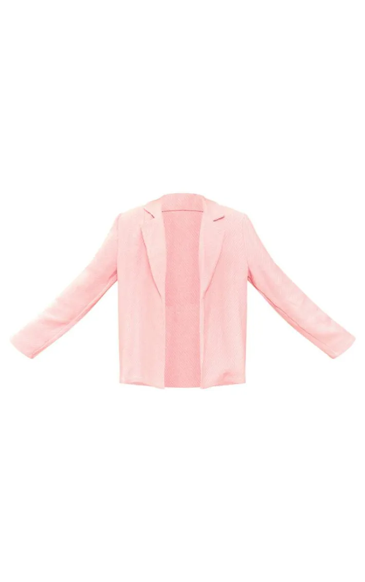 Keep it chic with this light pink textured oversized structured minimal blazer. Brought to you in a light pink textured material with an oversized fit and a structured design, we are obsessed. This minimal blazer is perfect for those day to night looks and beyond. Team with a pair of similar hue shorts and your fave accessories for a look like no other.