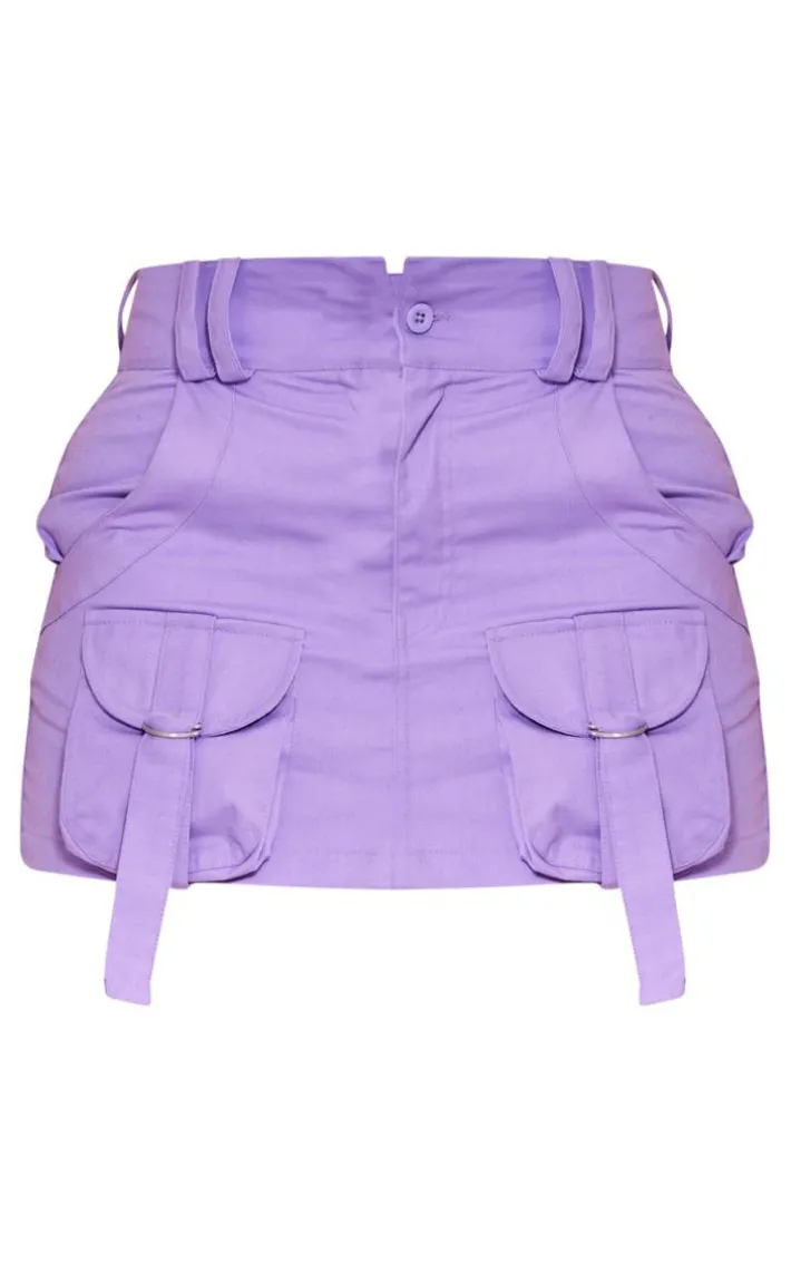 Add some of this season’s must-have hue into your wardrobe with this lilac cargo pocket detail micro mini skirt, you won’t be able to resist this statement piece. It features a lilac material with a pocket detail and a micro mini length, how could you say no? Style this micro mini skirt with a matching hue top, chunky sandals and your fave accessories for an effortlessly chic finish.
