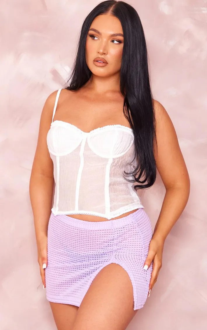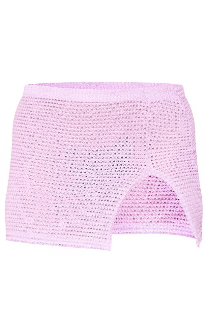 Add some pastel hues to your wardrobe this season with this lilac crochet rib split hem micro mini skirt. Whether you’re having a catch-upor want to switch up your off-duty style, this micro mini skirt is your answer. Made from a lilac crochet rib material with a split hem and a figure-flattering fit, how could you resist? Take your look to the next level with a corset top, chunky sandals and a shoulder bag.