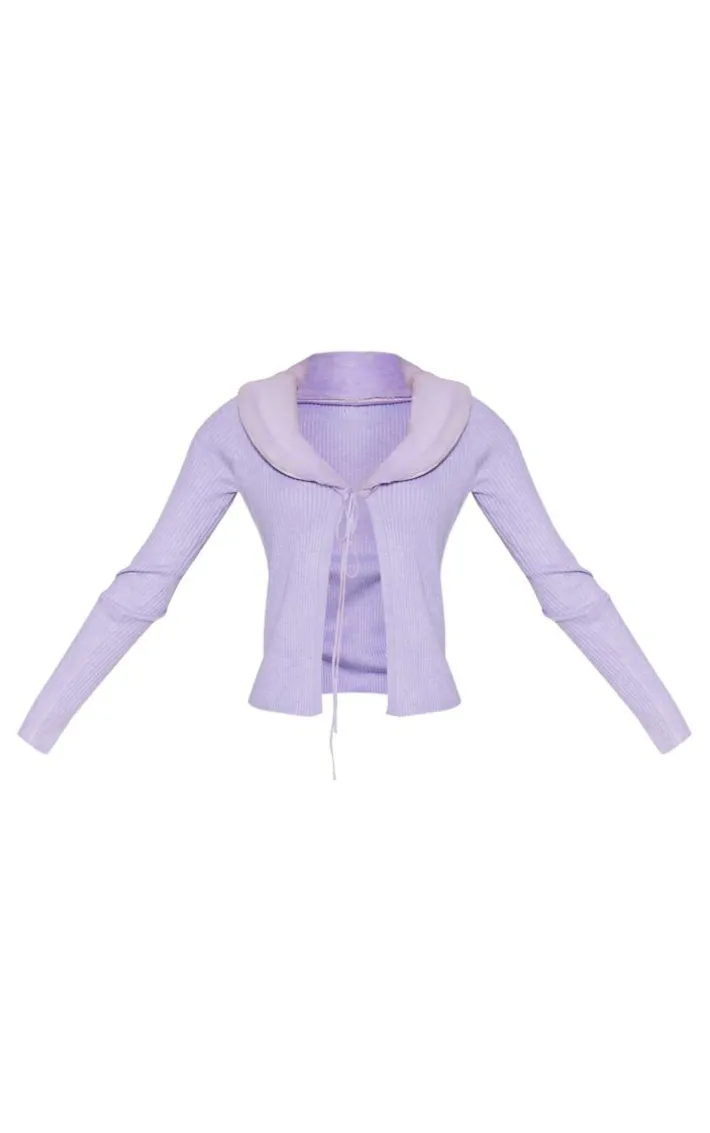 This lilac faux fur collar rib knit cardigan is here to banish any of your what to wear dilemmas. Brought to you in a lilac knit material with a faux fur collar, we can’tget enough. From start to finish this rib cardigan will have you looking totally on-trend. For a next-level look simply style with a denim skirt. It’s a yes from us.