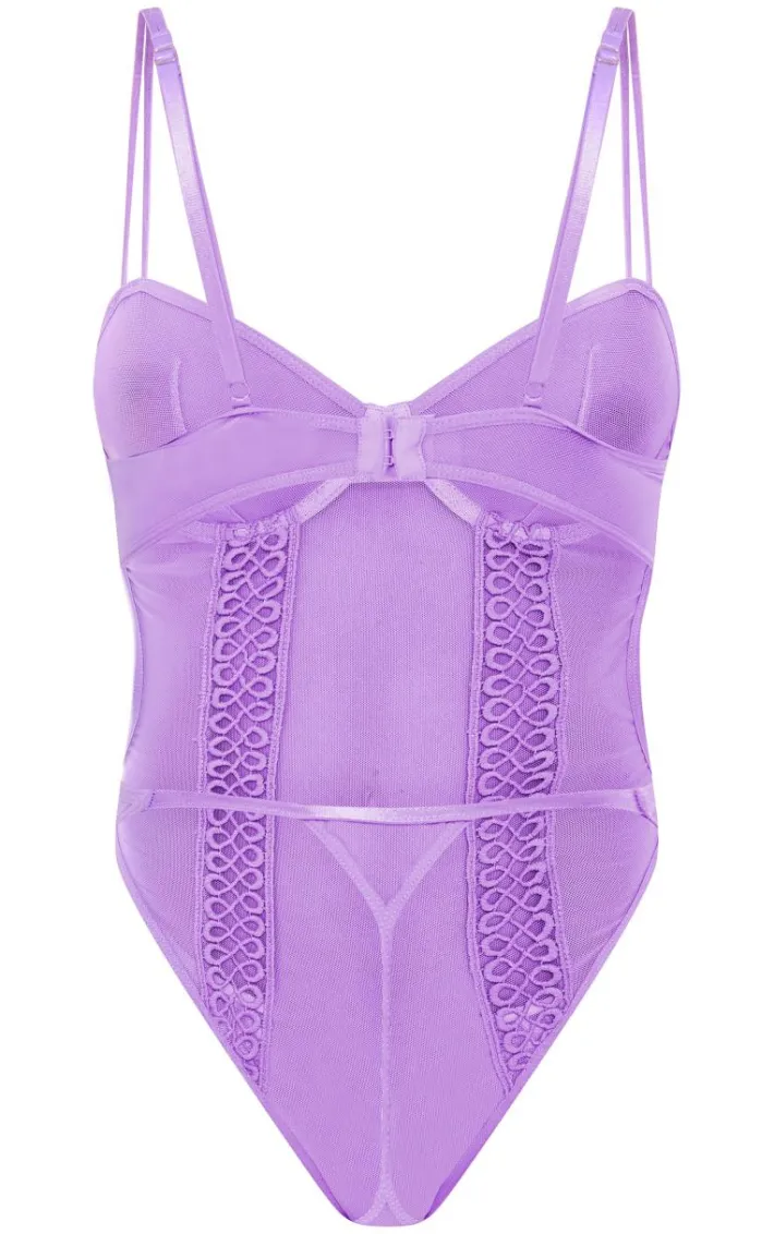 Add some statement hues to your wardrobe with this lilac mesh textured panel lingerie bodysuit. Brought to you in a lilac mesh material with a textured panel giving you a flattering fit that will turn heads for all the right reasons, what more could you want? this lingerie bodysuit will have you tapping into your confident side. Team with your fave accessories, or wear under your outfit of the day for a look like no other.