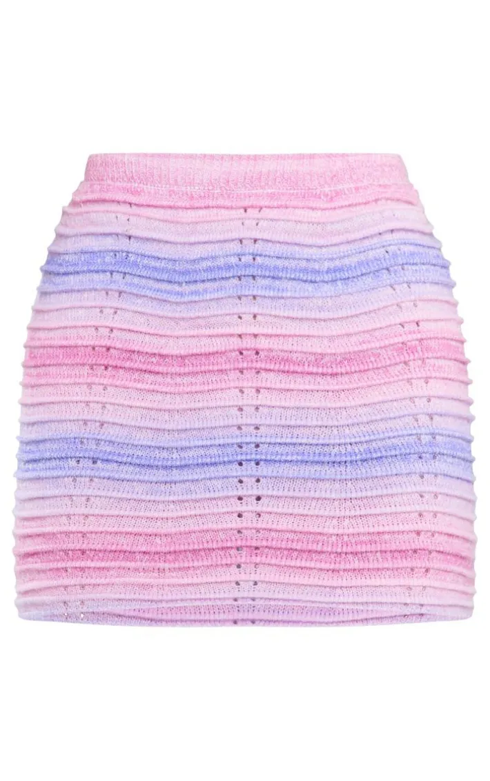 Add some dreamy prints to your new season wardrobe with this lilac ombre ripple knit mini skirt. Brought to you in a lilac hue ripple knit material with an ombre print design and a flattering mini fit, how can you resist? We are loving this mini skirt styled with the matching top, flatform sandals and oversized shades for a look that is perfect for festival styling, your next vacay or simply for those weekend plans.