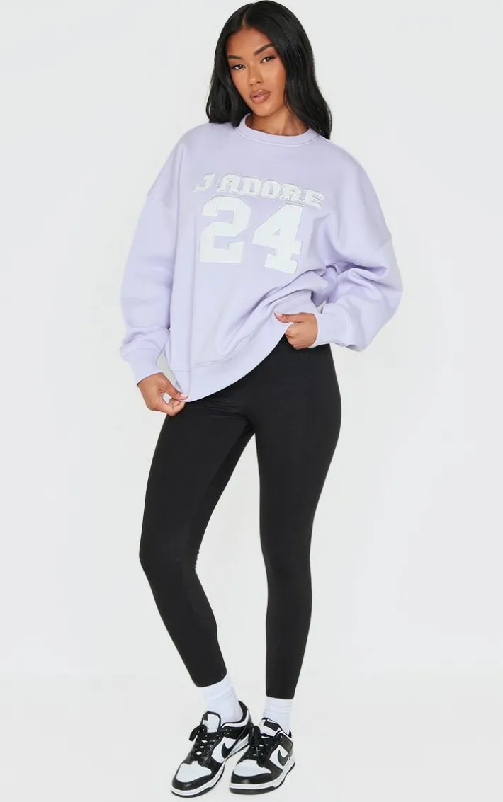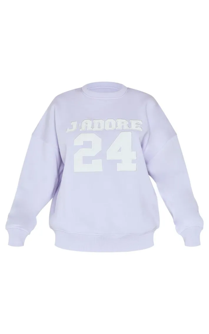 Add a pop of color to your cosy collection with this lilac oversized applique Sweatshirt. Brought to you in a must have lilac hue, with an oversized fit and a ‘J’adore 24’ applique design, what’s not to love? Style with a pair of black leggings and sneakers for a look we’re loving. It’s a yes from us.