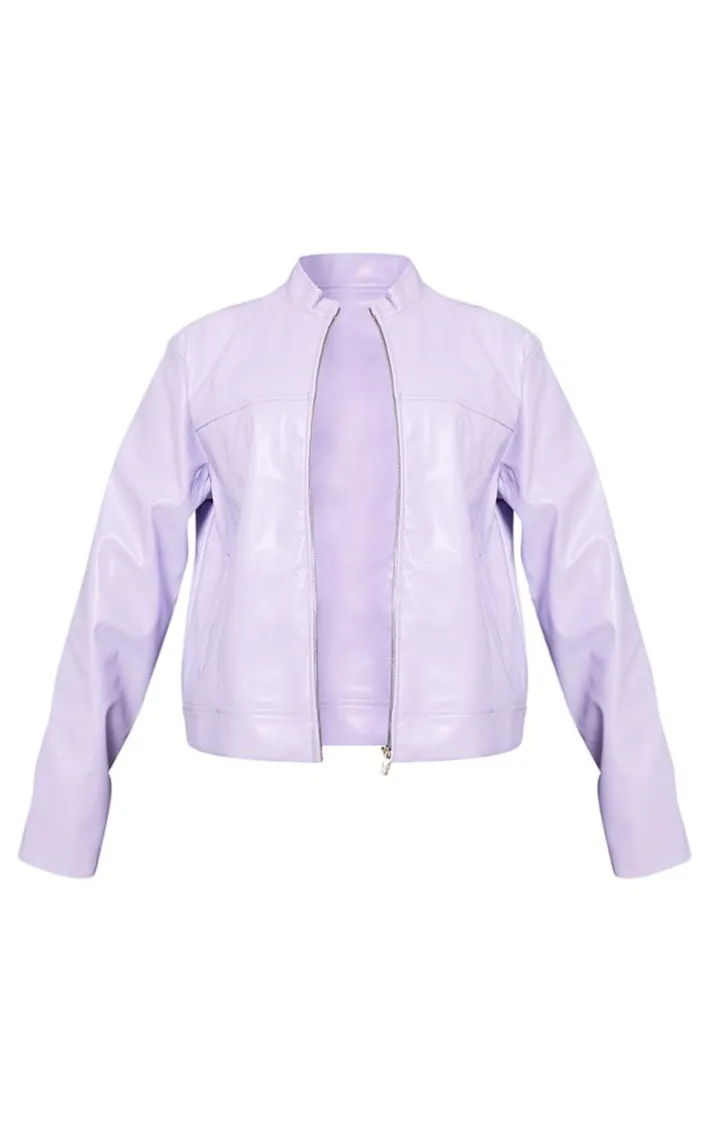 Add some pastel tones into your new season wardrobe with this lilac PUracer neck jacket. This jacket is brought to you in a lilac PU material with a racer neck and a zip-up fastening, what more could you ask for? Layer this jacket over your outfit of the day for a vibe like no other.