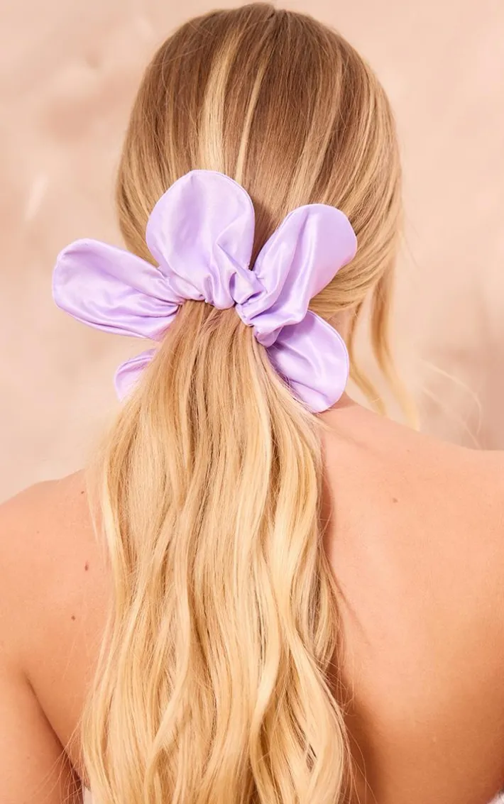 We’re all about pastel hues this season and this lilac satin oversized flower scrunchie is sure to bring all the luxe vibes to your look. It is made using a lilac satin material with a flower design and an oversized style. Simply pair this satin scrunchie with your fave outfit of the day for all the dreamy feels.