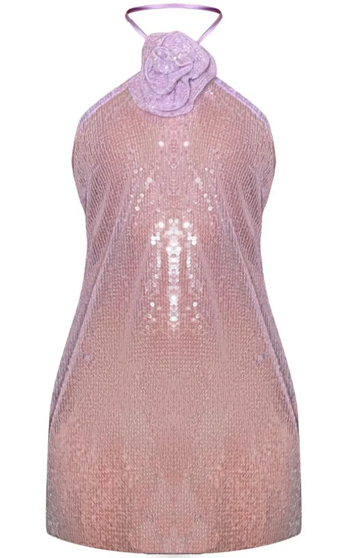 Create a look no one will forget with this dreamy lilac sequin halterneck rose applique shift dress, you won’t be able to resist. With a lilac sequin material, a rose applique detail and a halterneck style, this dress just went straight to the top of your hit list. Pair it with your fave heels and a mini bag for a look that is perfect for your next event.