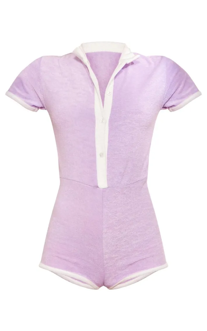 Take everyday styling to a whole new level with this lilac towelling unitard. Brought to you in a dreamy lilac hue material with a button through design and a figure-flattering fit, what’s not to love? Style this lilac unitard with sandals and simple gold accessories for a look that is sure to make heads turn for all the right reasons.