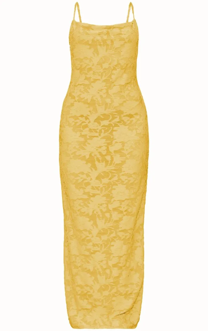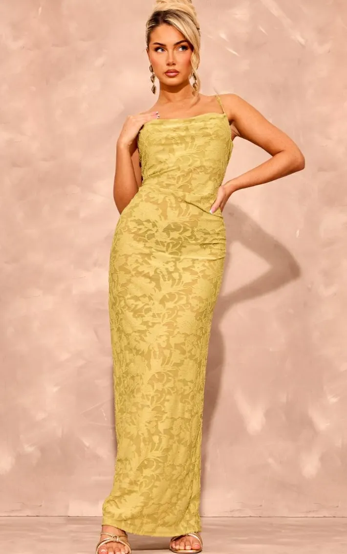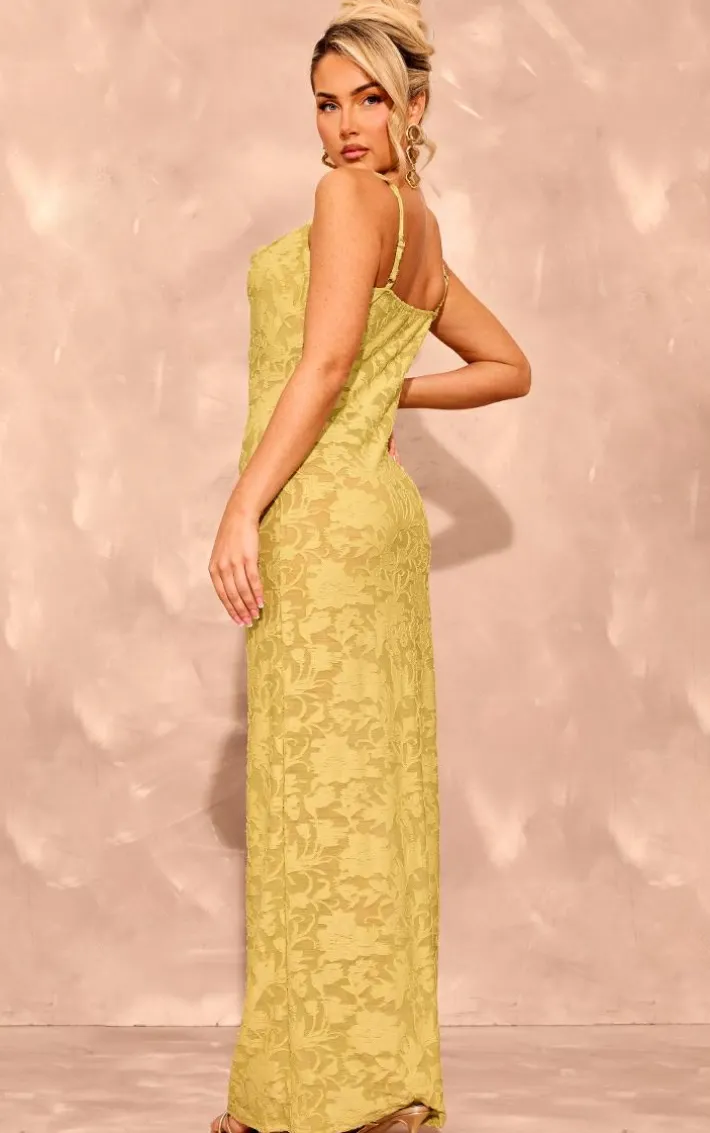 Make a statement with this lime floral sheer burnout cowl neck strappy maxi dress. Brought to you in a lime floral material with a sheer burnout design and a cowl neck fit, you are sure to set major trends in this strappy maxi dress. Team this unreal maxi dress with a pair of heels and gold accessories for a look like no other.