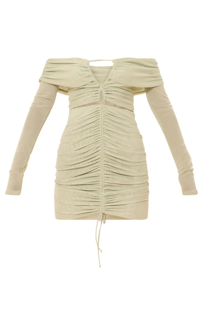 Keep your look bold and bright this season with this lime mesh ruched off bardot mini dress, it’s a definite yes from us. This dress features a lime mesh material with ruched detailing and a bardot style, you’re sure to be earning all the compliments. Pair this mesh dress with heels and your fave accessories to earn all the compliments.