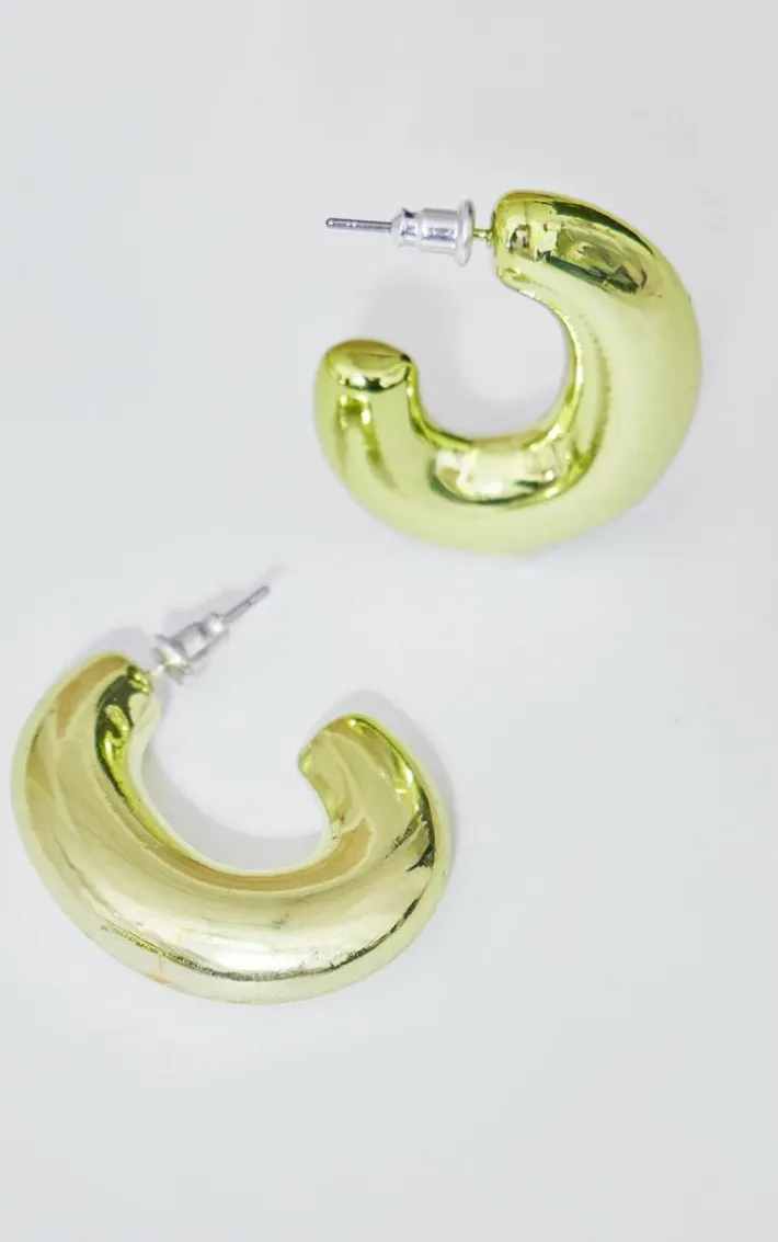 Keep it chic with these lime metallic hoop earrings. Brought to you in a lime metallic material that will bring all the edge to your outfit of the day. These hoop earrings are all you need to make a statement, so what are you waiting for ? Shop the look and team with your go-to outfit of the day to turn heads this season.