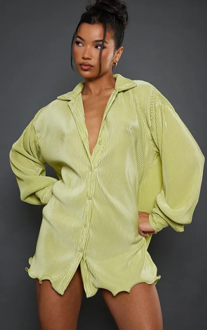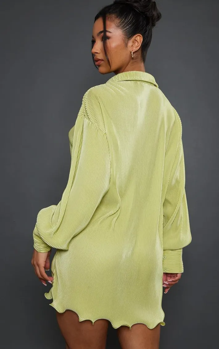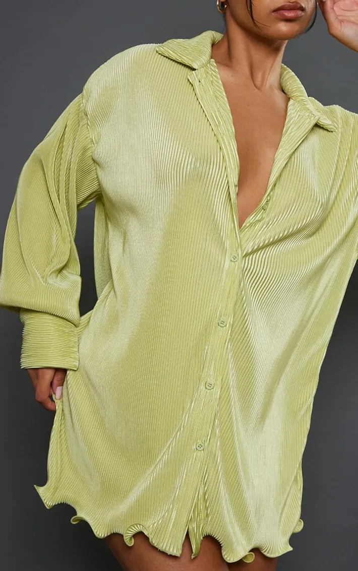 Add some bold hues to your weekend look with this lime plisse frill hem shirt dress. Made from a lime plisse material with a button-up fastening, frill hem and relaxed fit, what’s not to love? Whether you have a brunch dateor a special occasion in the diary, this shirt dress is sure to catch all the attention. Team with gold accessories, clear heels and a little attitude for a statement finish.