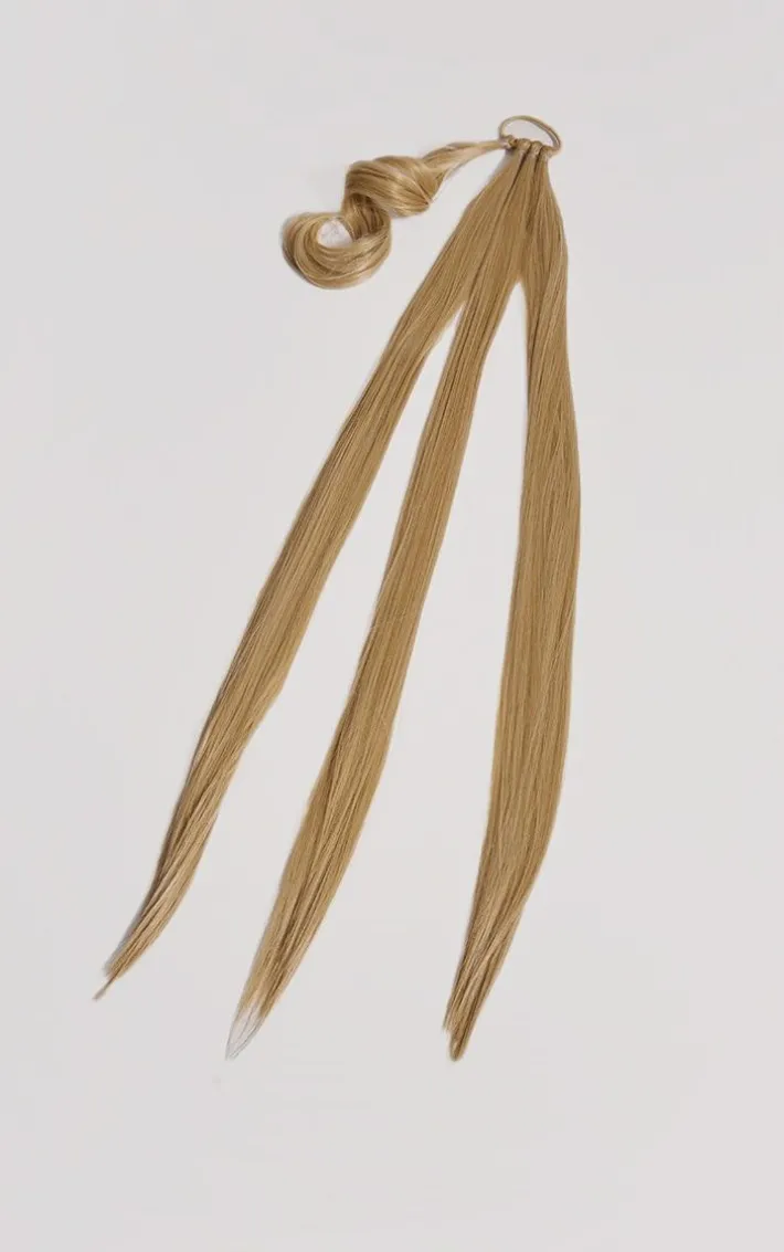 Tie the hair piece around your ponySeparate the shorter synthetic hair piece from the longer ones