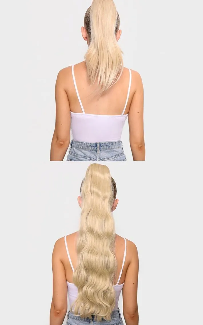 The hairpiece has a built in comb that grips under your bobble, which can then be securely fitted by wrapping the velcro and hair around your pony to ensure a seamless application. This pony is pre-styled in an ultra glam Hollywood Wave that will conceal your own hair and add those extra inches. This hair is suitable for all hair types but a more natural blend can be obtained with pre-styled wavy hair.