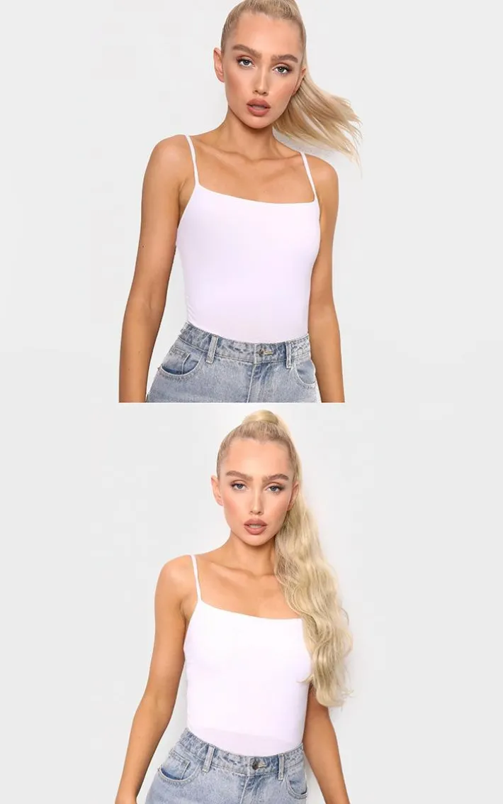 To apply, tie your hair into a tight pony at the desired height you’d like your new pony to sit. Attach the hairpiece by gripping it under your bobble with the built-in comb; this can then be securely fitted by wrapping the Velcro and hair around your pony to ensure a seamless application. To finish we recommend using grips to further secure the positioning of the ponytail on your head.