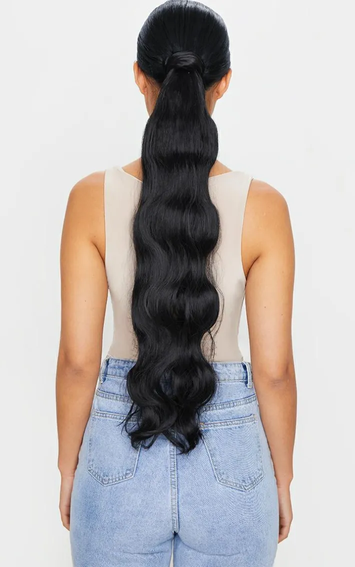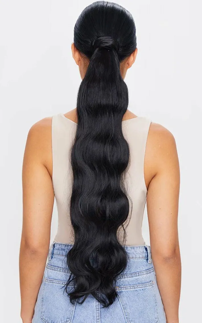 LullaBellz Grande Hollywood Wave 26″ Wraparound Pony Natural Black