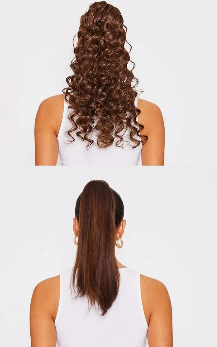 Attach the hairpiece by gripping it under your bobble with the built-in comb; this can then be securely fitted by wrapping the velcro/hair around your own pony to ensure a seamless application.