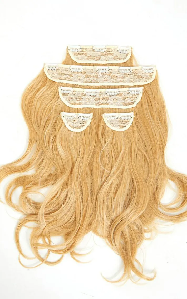 LullaBellz Super Thick 22’5 Piece Blow Dry Wavy Clip In Hair Extensions Golden Blonde
