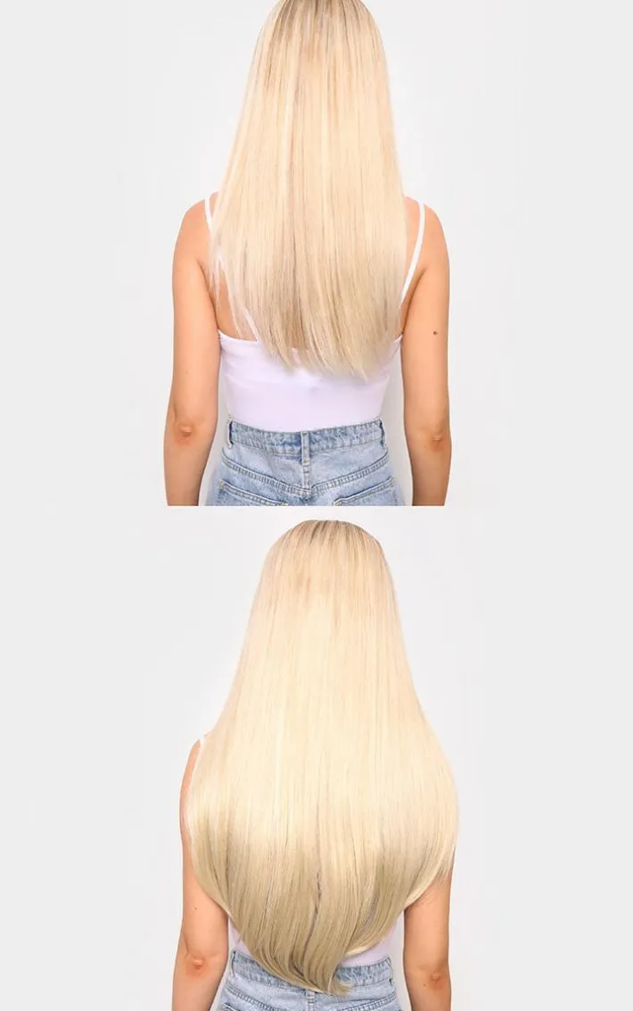 Includes 5 pieces of premium synthetic hair that clip into your hair. 3 wider pieces clip in at the back of your hair and 2 narrow pieces clip in at the side to frame your face and give all over length and volume. They’re pre-styled so you can clip and go – no further styling needed!