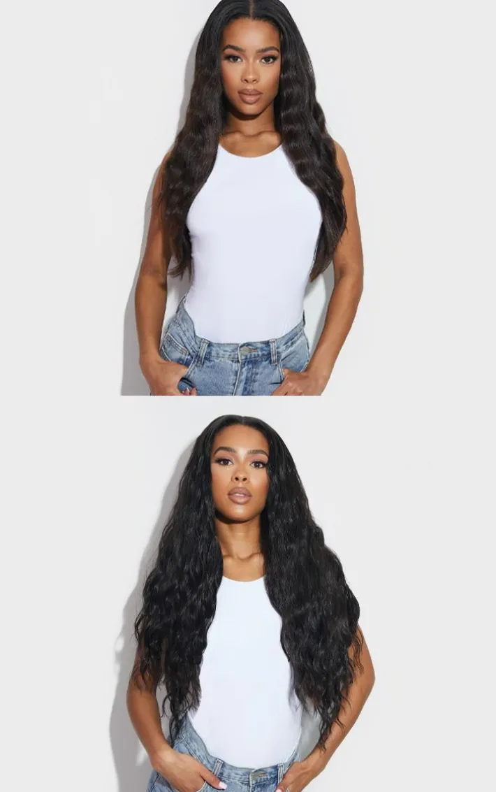 This set includes 3 wider pieces to clip in at the back of your hair along with 2 narrow pieces to be clipped in at the side to frame your face and give all over length and volume. And the best part? They’re pre-styled into that effortless textured wave.