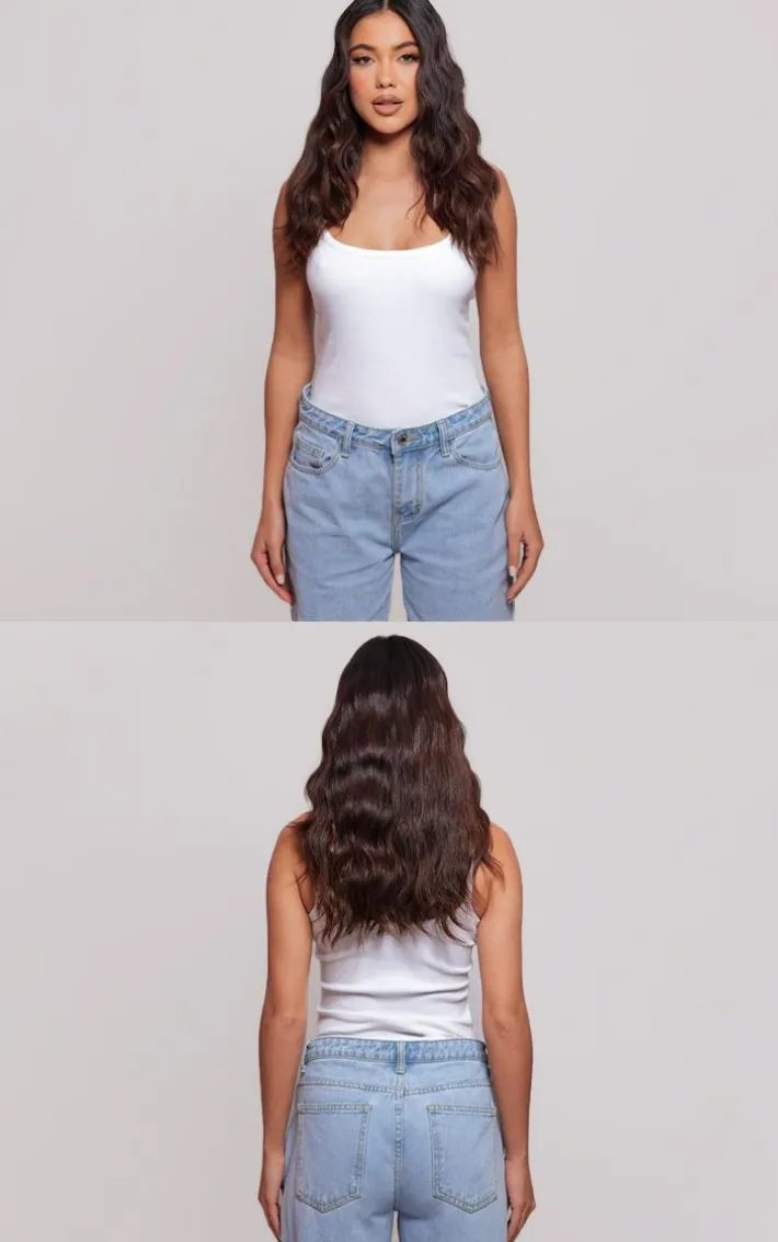 Simply pop open the clips on the weft, slide it into your natural hair and snap shut to secure. The small silicone bands on each clip ensure that the wefts stay completely secure. Part your hair and clip the piece in at the back of your hair to add thickness, length and volume.