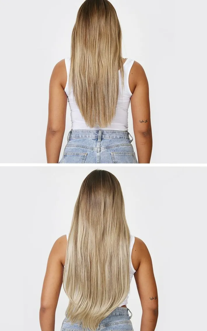 Simply pop open the clips on the weft, slide it into your natural hair and snap shut to secure. The small silicone bands on each clip ensure that the wefts stay completely secure.Part your hair and clip the piece in at the back of your hair to add thickness, length and volume.