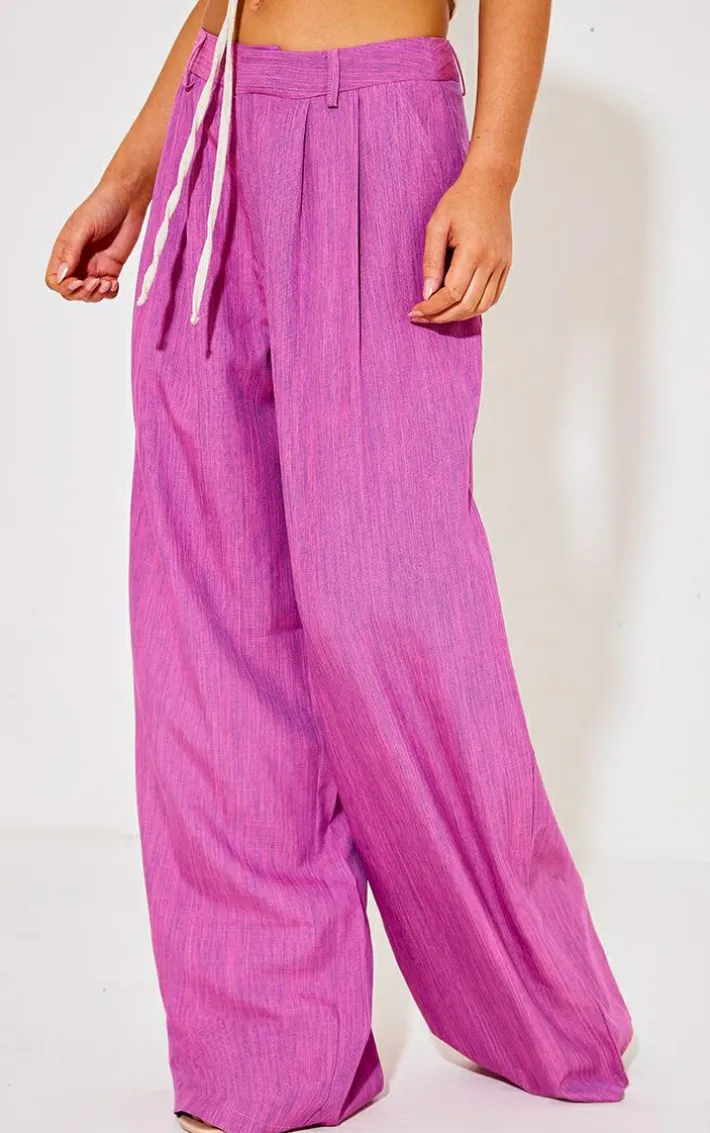 No one wants to blend into the crowd these days doll and these magenta woven linen feel tailored high waist wide leg pants are bound to steal all the attention. Brought to you in a magenta woven linen feel material with a tailored design, a high waist and a wide-leg fit, what’s not to love? These pants are everything you have been looking for and more doll, so don’t miss out. Style effortlessly with a dreamy crop top, clear heels and a mini bag for the ultimate glam vibe.