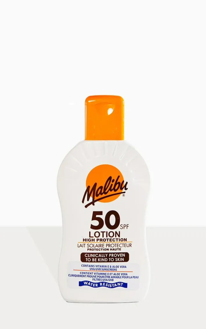Malibu SPF50 Protective Lotion Spray provides protection from UVA and UVB rays.