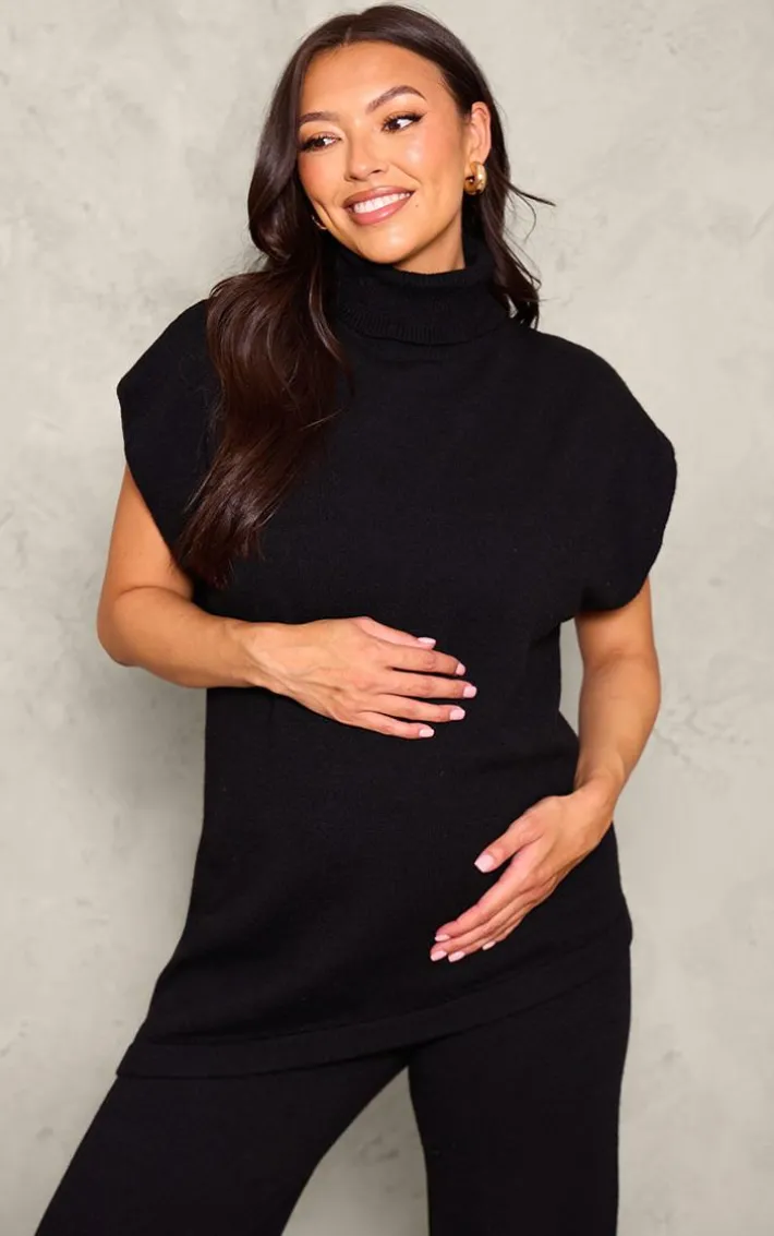 Calling all yummy mummies, this maternity black knit roll neck sleeveless asymmetric hem top is calling your name. Brought to you in a black knit material with a roll neck design and sleeveless detail, this asymmetric hem top is at the top of our wish list. Style with the matching pants, fresh kicks and gold accessories for a combo we’re crushing on this season.