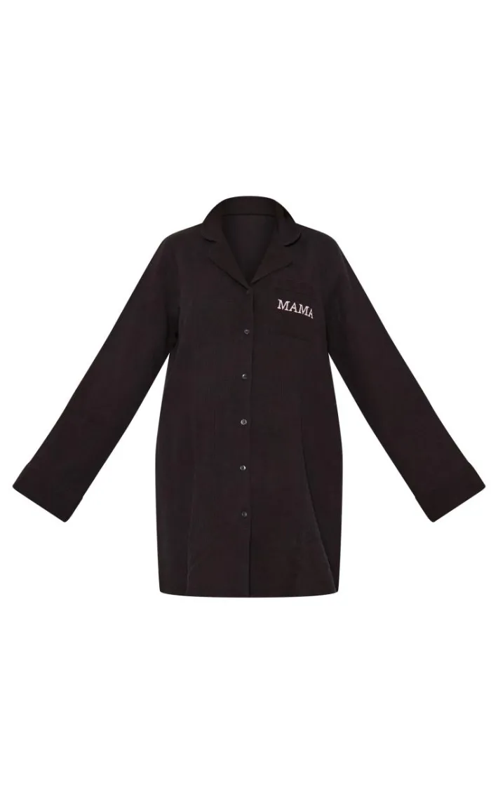 Bring all the comfy vibes to your sleepwear collection with this maternity black waffle Mama embroidered nightie. Made from a black waffle material with a ‘Mama’ embroidered design and a button through fastening, what more could you want? Just add fluffy slippers and get ready for the perfect night in.