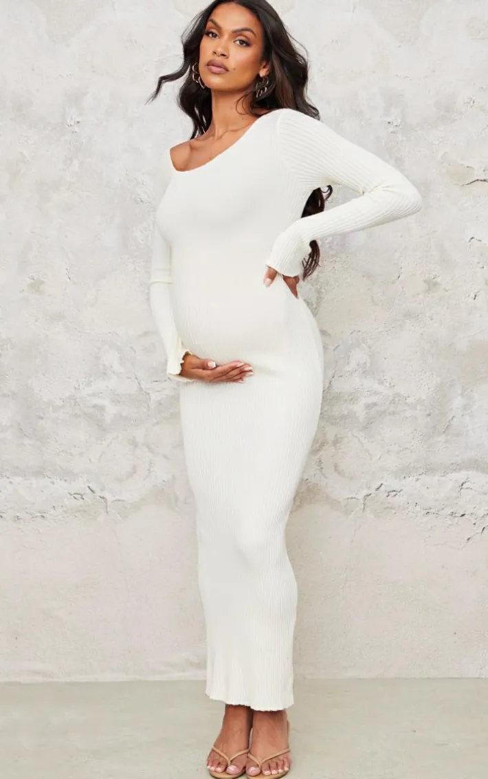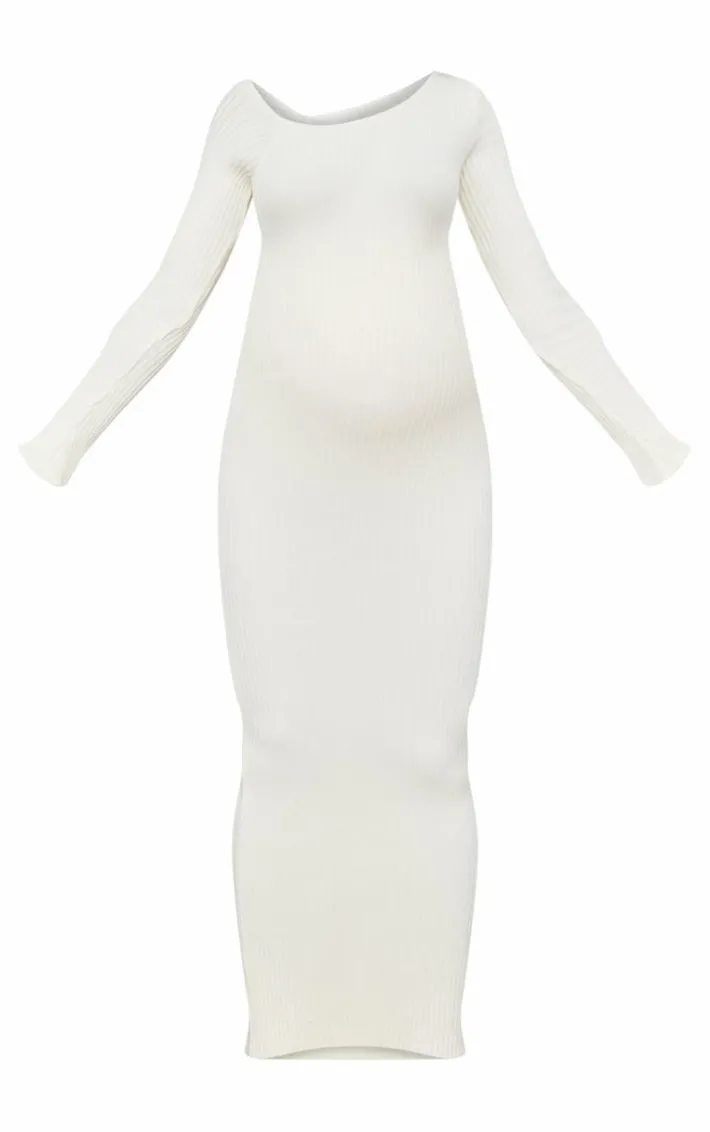 Take the stress out of weekend styling with this maternity cream asymmetric long sleeve rib knit maxi dress. Brought to you in a cream hue rib knit material with an asymmetric design, long sleeves and a bump-hugging fit, what’s not to love? Style this maxi dress with heels and a mini bag for an effortlessly chic look we’re loving.