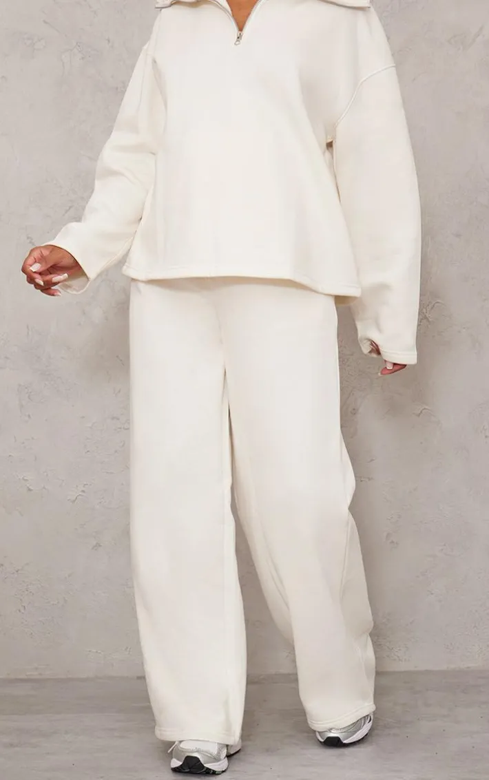 Introducing your new season staple with these maternity cream wide leg sweatpants. Brought to you in a cream hue material with a wide leg fit, these sweatpants are everything you need and more. Style with the matching Sweatshirt, fresh kicks and black accessories for a chic off-duty finish we’re loving.