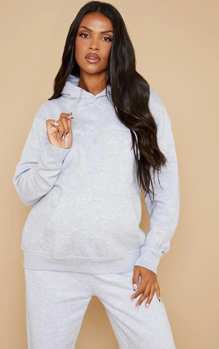 Add some comfort to your look with this maternity grey PrettyLittleThing embroidered hoodie. This unreal hoodie is brought to you in a grey material with a front pocket and a comfy fit, what more could you want? Team this hoodie with the matching bottoms and fresh kicks for the ultimate off-duty combo.