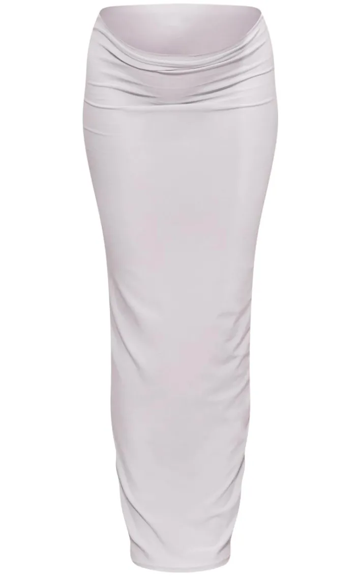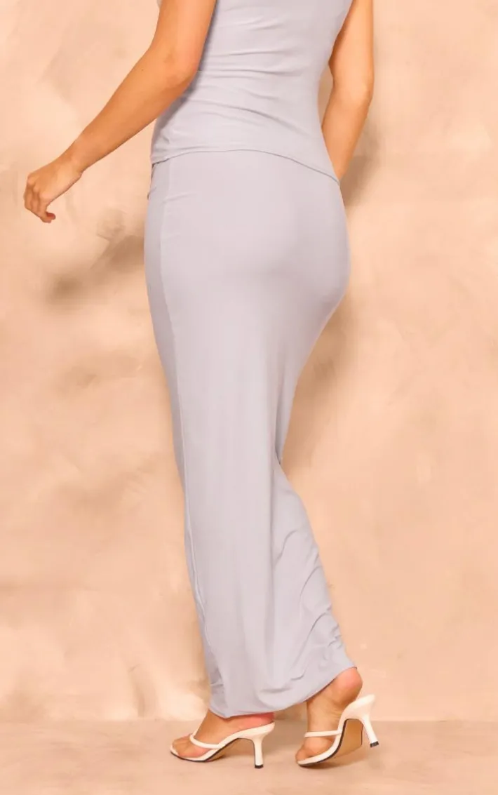Stay in style this season with this maternity grey soft touch maxi length skirt. Brought to you in a grey soft touch material with a maxi length, this skirt is at the top of our wish list. Style with the matching top, white heels and chic accessories for a look that won’t miss this season.