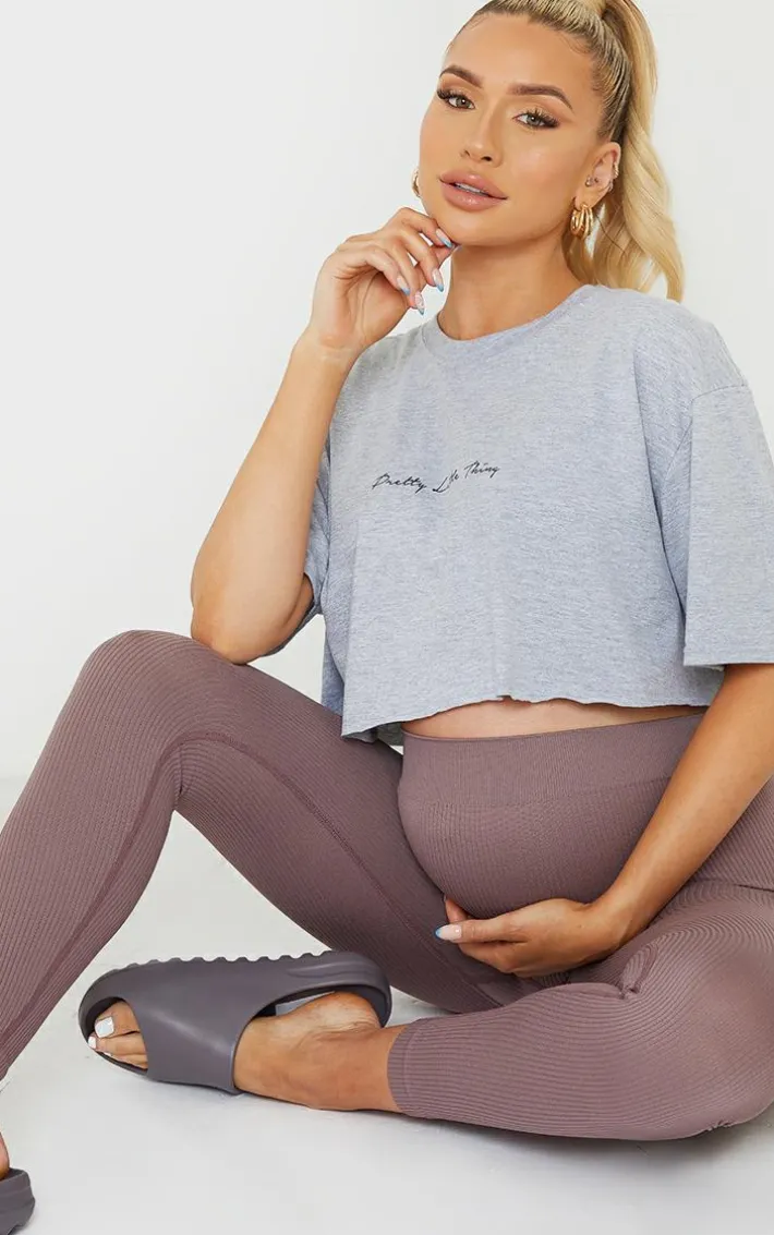 These leggings are a must in every mummy to be’s wardrobe. Featuring a mauve ribbed material with a bump support design, contour detailing and a flattering fit. Simply style these with a cropped t-shirt and slides for ultimate comfort.