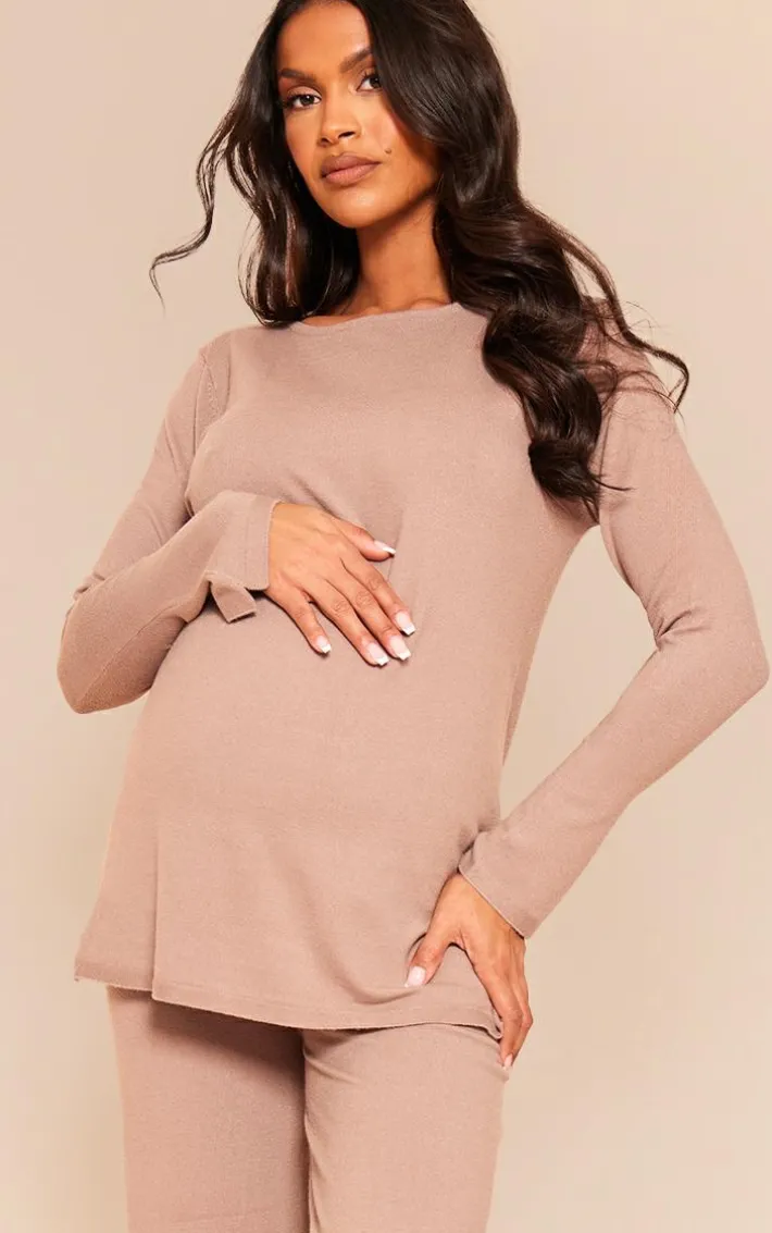 Get ready to add some on-trend neutral hues into your new season wardrobe with this maternity mocha knitted crew neck sweatshirt. Brought to you in a mocha hue knitted material with a crew neck design and a comfy fit, how can you resist? Pair this maternity sweatshirt with the matching pants, sneakers and simple accessories for an effortless everyday look you will be reaching for again and again.