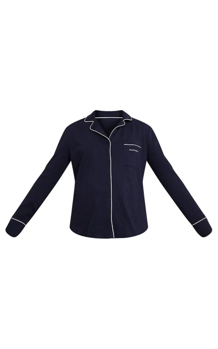 Keep your sleepwear look seriously chilled in this maternity navy mama long sleeve button up PJ top. It is made using a navy hue material with a ‘Mama’ print and long sleeves, what’s not to love? Team this maternity PJ top with the matching bottoms and comfy Slides to complete the look.