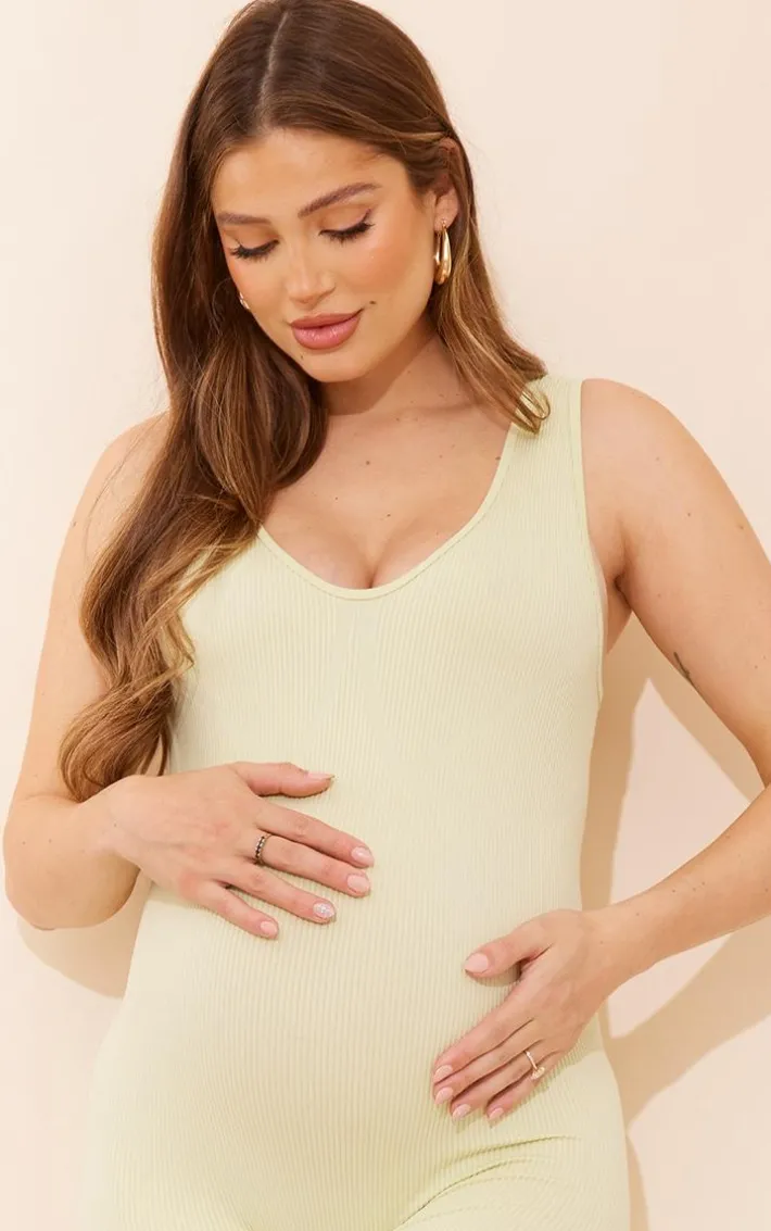 Switch up your new season style game with this maternity pale green snatched rib seam detail jumpsuit, it is everything we are loving for taking your look effortlessly from day to night. This jumpsuit features a pale green snatched rib material with seam detailing and a figure-worshipping fit, what’s not to love? Team this maternity jumpsuit with your fave flats and minimal accessories for a simple but chic finish.