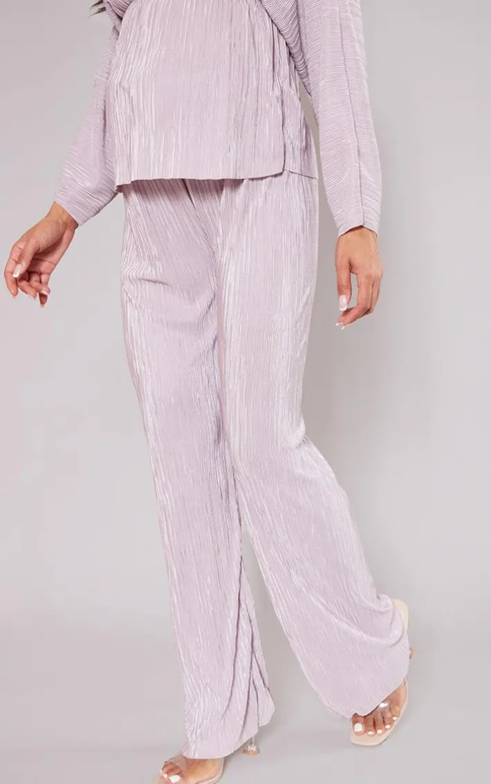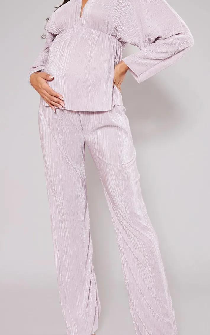 Found some last-minute weekend plans and need an unreal ‘fit? Then we have you covered with this styling staple, a maternity rose plisse lettuce hem wide leg pants. With a rose plisse material with a lettuce hem and a wide leg fit, we’re obsessed. Work your styling techniques and add a the matching top, clear high heels and accessories for a weekend-worthy finish that will gain all the likes.