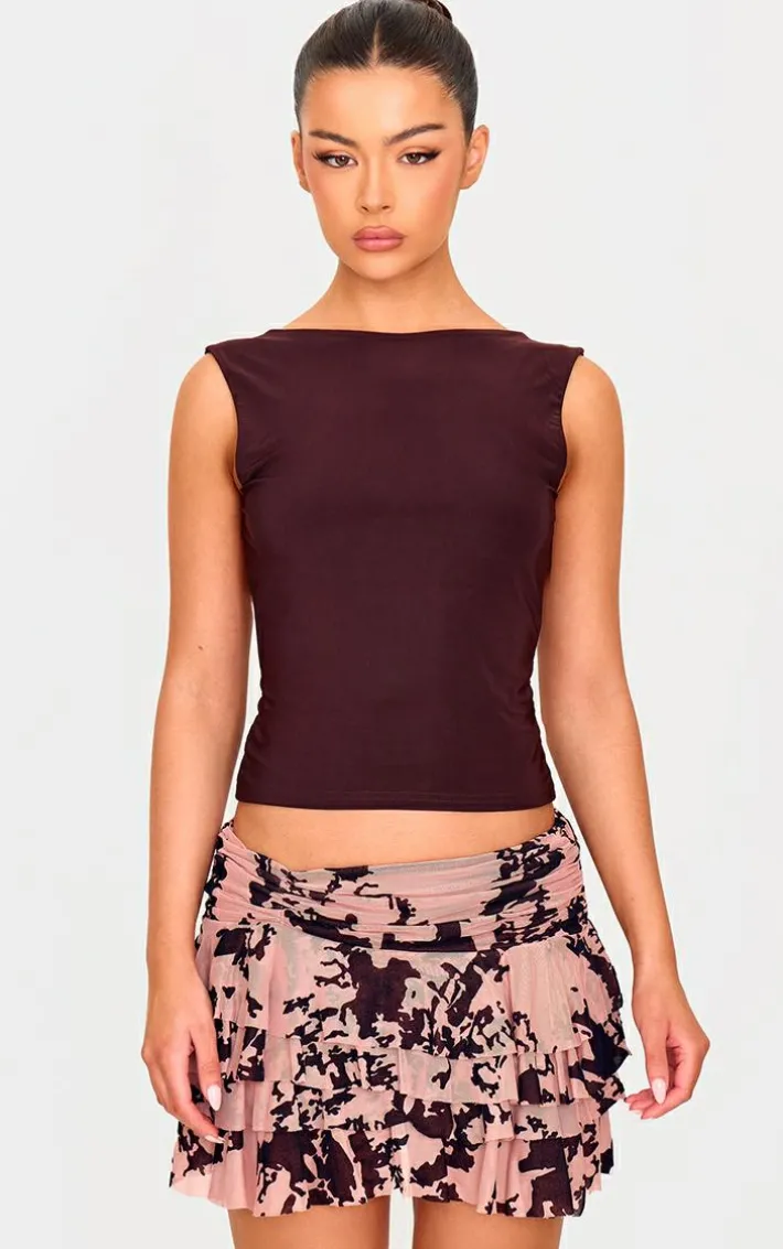 Take a chance on this mauve devore frilly ruched front mini skirt for a look you won’t regret. Brought to you in a neutral mauve tone, with a luxe devore design, frilly detailing and a ruched front, what’s not to love? Team with a black crop top and pair of strappy heels for a chic finish.