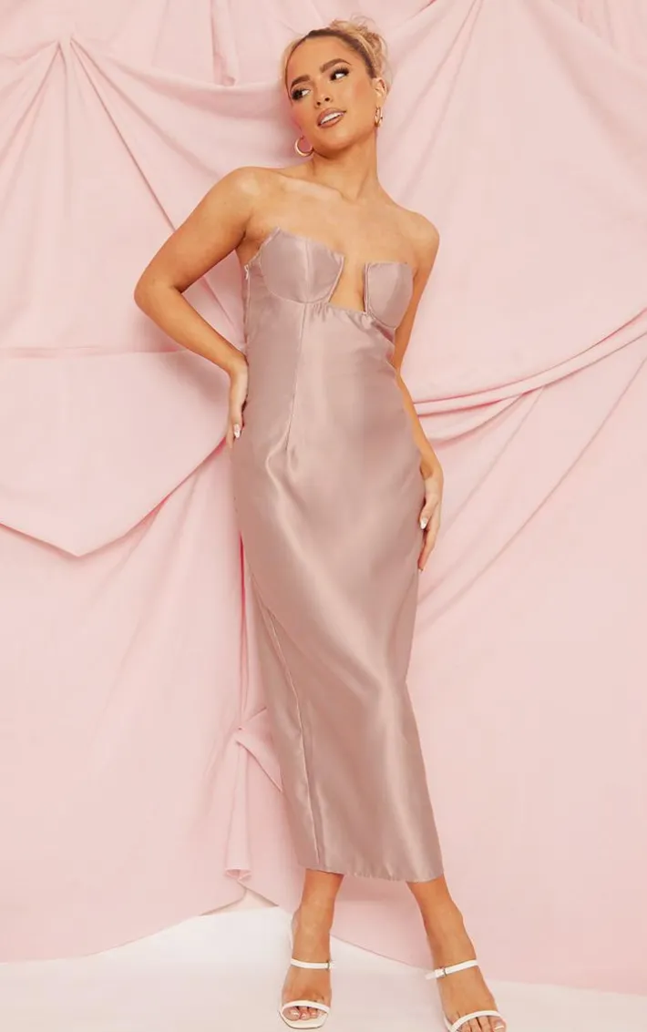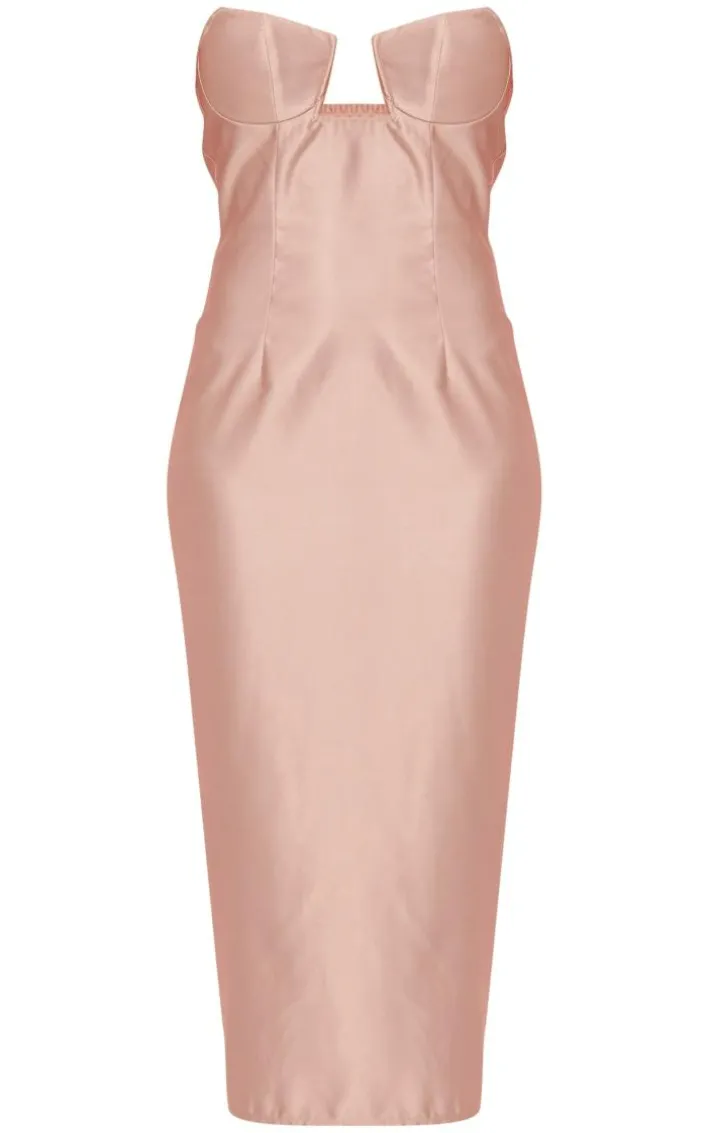 When your occasion look calls for abit of drama, this unreal mauve satin V bar bandeau midi dress is the one for you. Made from a dreamy mauve hue satin material with a V bar design and a bandeau neckline, we just can’t get enough. Style this figure-flattering midi dress with strappy heels and statement accessories for a seriously chic look that will get them talking.