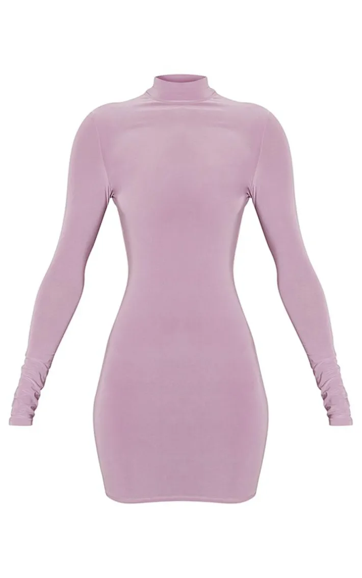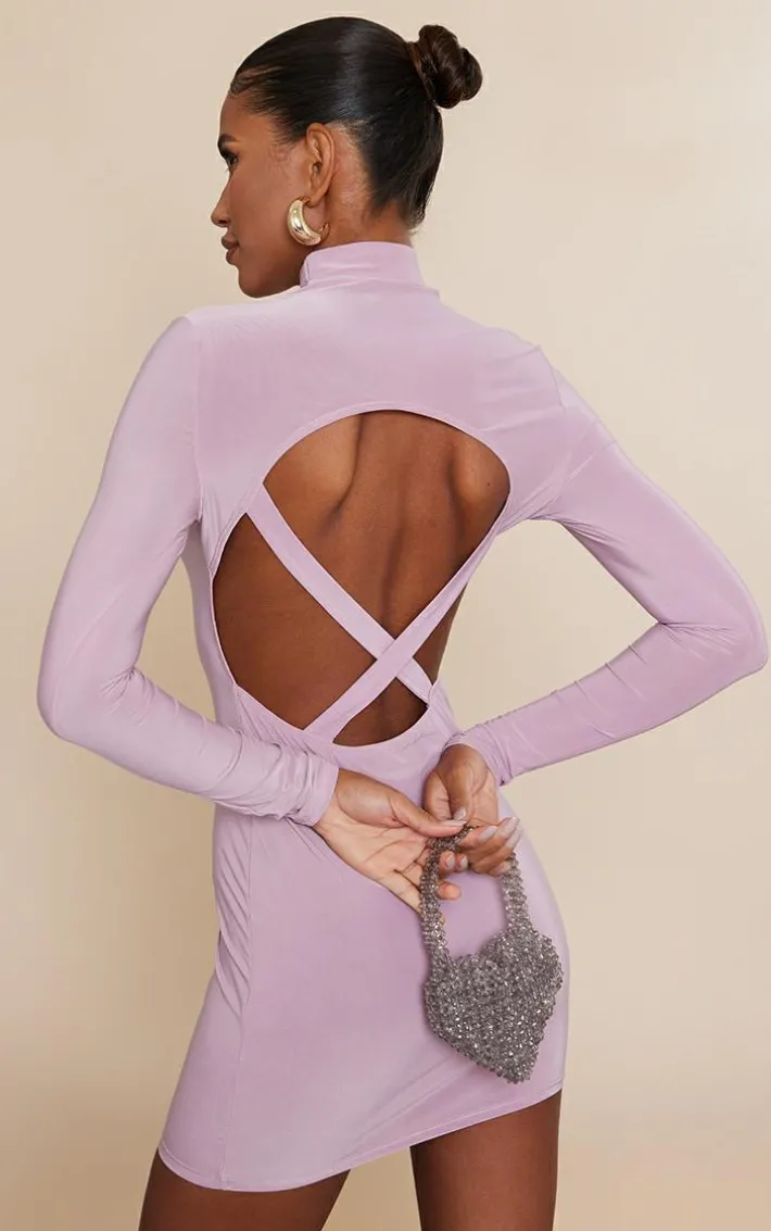 Get ready for the weekend with this mauve slinky cut-out cross-back long sleeve bodycon dress. Made from a mauve slinky material perfect for showing off your unreal figure, with cut-out detail and a cross-back design to add that luxe touch, what more could you ask for? Whether you have a romantic date night planned or a catch-up , this bodycon dress is the only choice. Style with a statement bag, clear heels and gold accessories for a flawless finish.