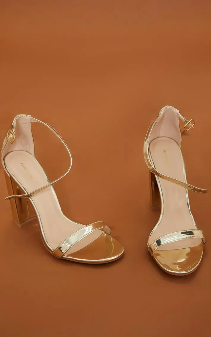 These heels are essential for any occasion. Featuring a gold material with a block heel and buckle fastening, we are obsessed