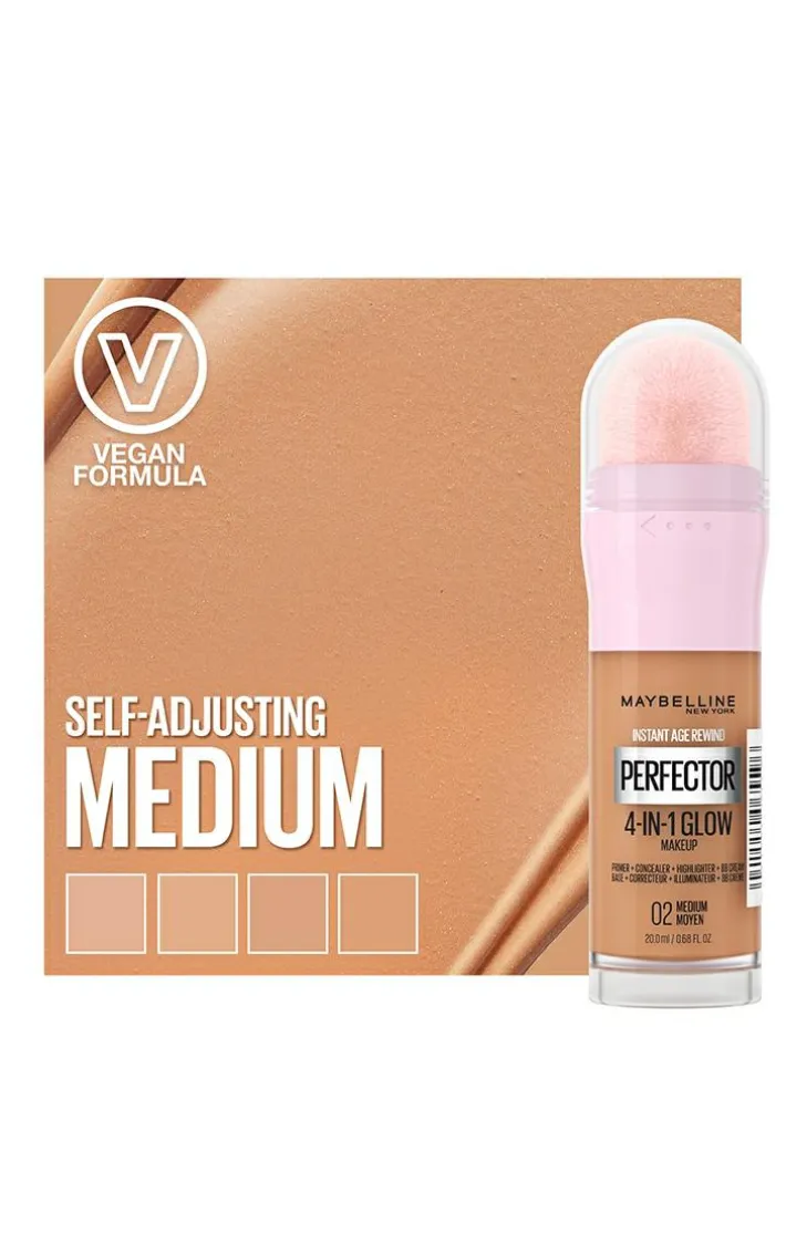 Meet Maybelline New York’s 1st 4-in-1 makeup for a perfected glow look. Instant Perfector Glow gives skin the benefit of four products in one. Get the look of primer, concealer, highlighter and BB cream—all in one easy step. It’s an illuminating formula that primes, conceals, highlights, and evens skin tone with light coverage. This do-it-all makeup has everything you need to perfect your look in an instant! Available in 5 self-adjusting shades.