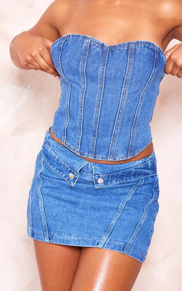 We are all about denim this season so get ready to earn some serious style points in this mid blue wash seam detail denim corset top. Brought to you in a mid blue wash denim material with seam detailing and a flattering corset fit, how can you resist? Style this denim corset with the matching mini skirt, a mini bag and fresh kicks for a fierce off-duty ‘fit we just can’t get enough of.