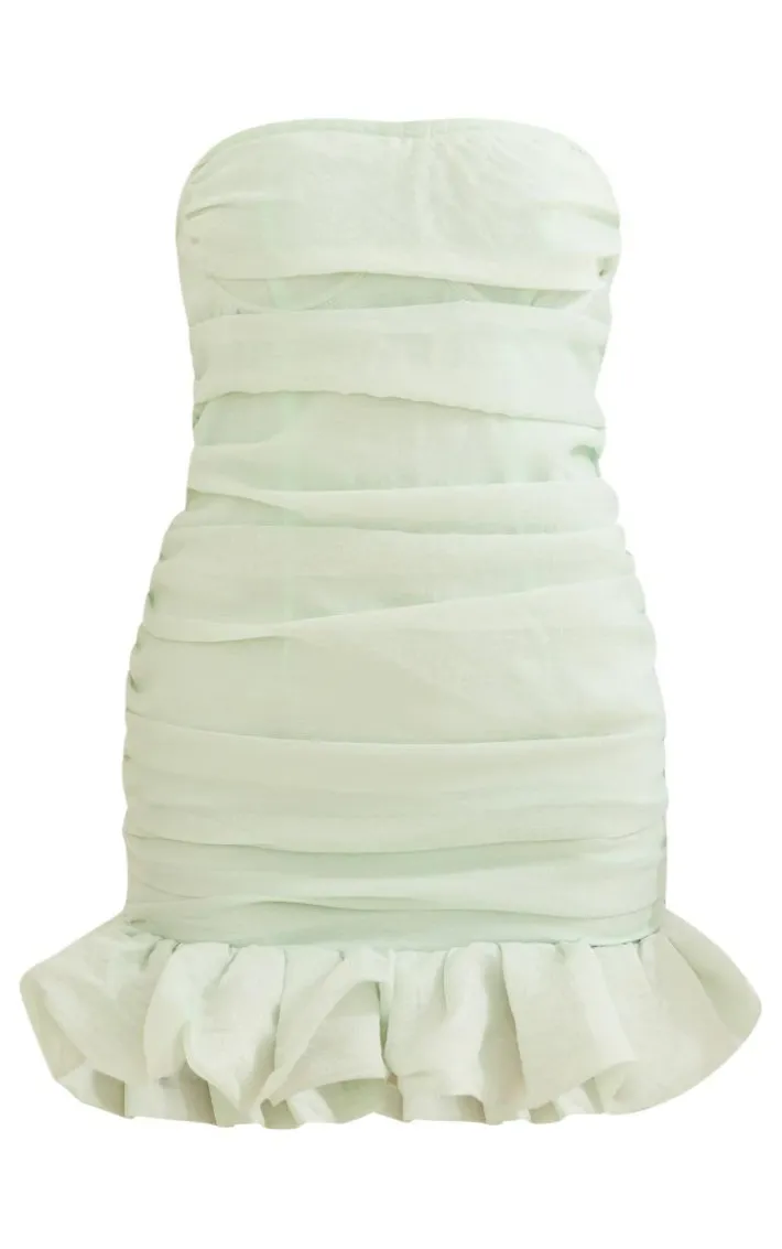 Get ready for your next upcoming occasion in style with this mint textured chiffon frill hem bandeau bodycon dress, you’re sure to be stealing all the stares. This dress is made with a mint textured chiffon material with frill hem detailing and a bandeau style, how could you say no? Style with your fave heels and simple accessories for a flawless look everyone will be talking about.