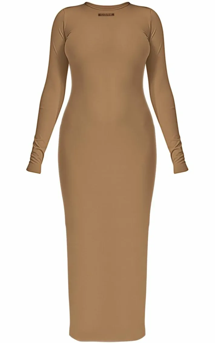 Add some of this season’s must-have hue into your wardrobe with this mocha core collection tab snatched sculpt long sleeve midaxi dress. Brought to you in a mocha snatched sculpt material with a ‘Core Collection’ tab detail and a figure-worshipping fit, how could you not be in love? Stay totally on trend this season with this midaxi dress, box-fresh kicks and a baseball cap. Its a yes from us.