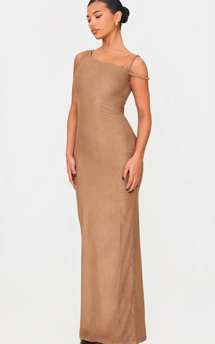 Be the best dressed in every room with this mocha faux suede twist shoulder maxi dress. Brought to you in a mocha faux suede material with a twist shoulder design and a maxi length, you won’t be able to resist. Team with a pair of heels and your fave gold accessories to finish off the look everyone is talking about.