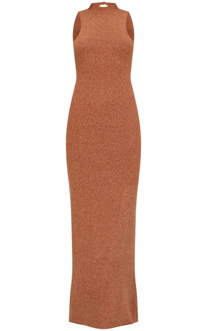 Introducing your new season staple with this mocha fluffy boucle knit racer maxi dress. Made from a mocha hue fluffy boucle knit material with a racer neckline, this maxi dress is a must have. Team with gold accessories and your go-to heels for a chic finish guaranteed to turn heads.